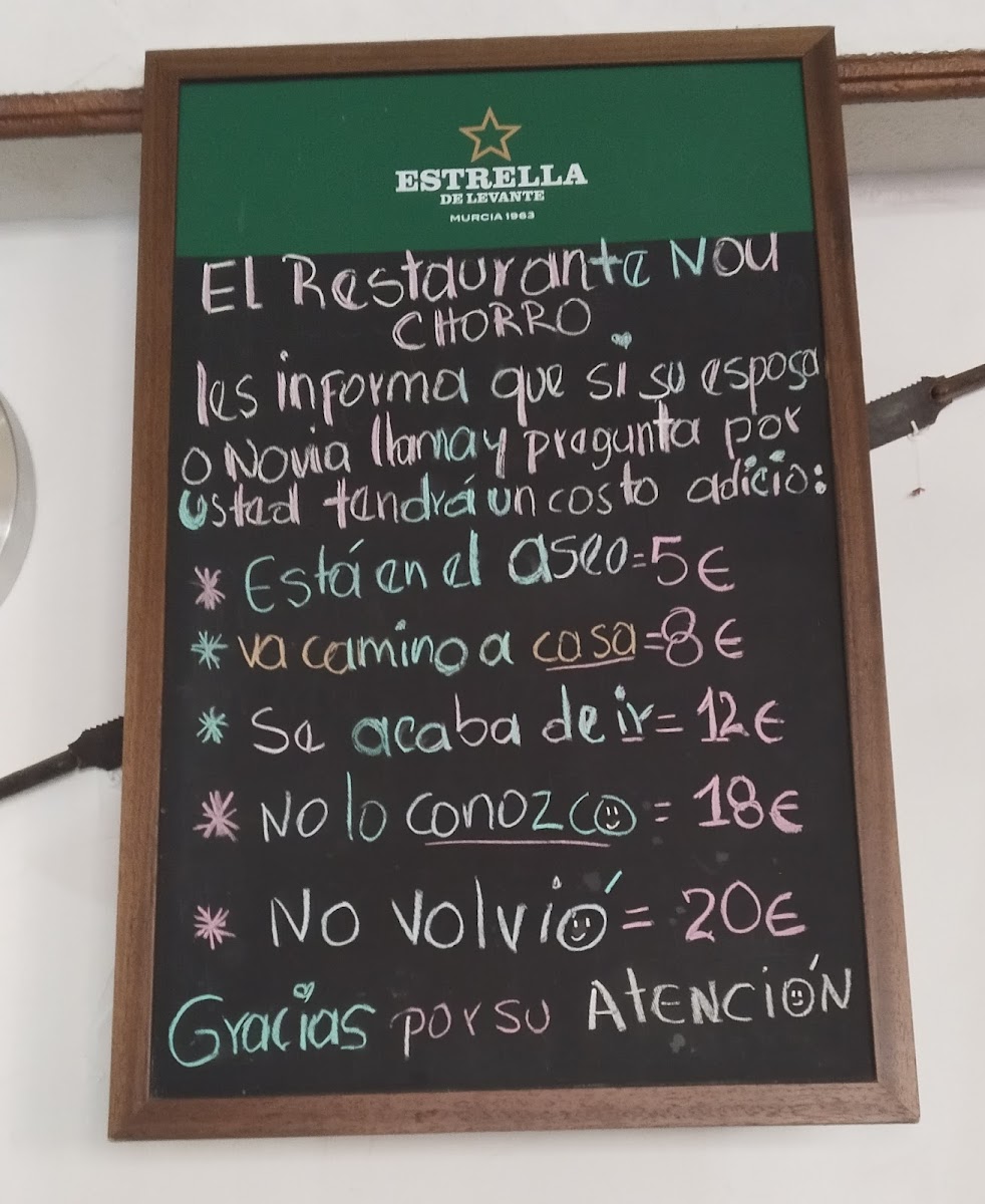 BAR-CAFETERÍA NOU CHORRO. Menu